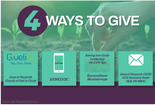 We appreciate your generous contributions toward our ministry. Feel free to give towards the Jesus of Nazareth Church of God in Christ .